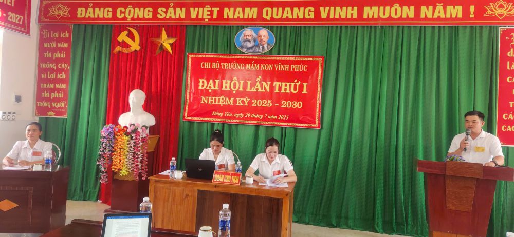 Căn cứ Kế hoạch số 30-CV/ĐU ngày 22/7/2025 của Đảng uỷ xã Đồng Yên về tổ chức Đại hội chi bộ và Hội nghị đảng viên; Chiều ngày 29/7 Chi bộ trường MN Vĩnh Phúc đã tiến hành Đại hội chi bộ nhiệm kỳ 2025-2030.