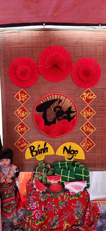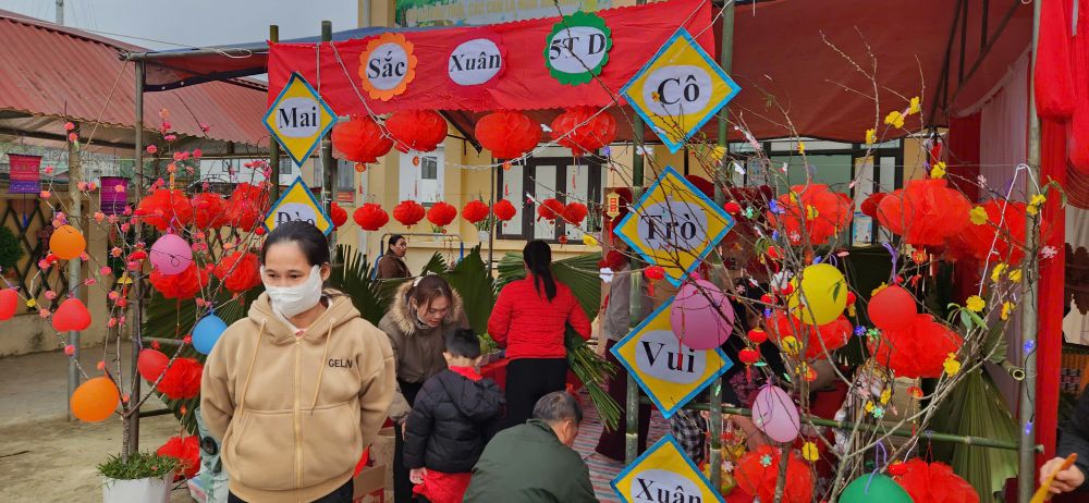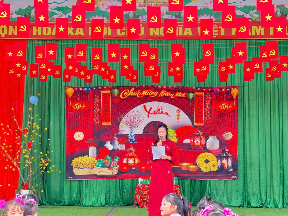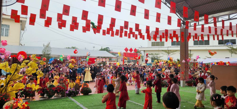 Hoạt động “Chợ Tết quê em” được tổ chức với không gian mang đậm nét văn hóa truyền thống: các gian hàng được trang trí rực rỡ sắc xuân với hoa đào, hoa mai, câu đối đỏ, bánh chưng, bánh tẻ, mứt Tết, nông sản quê hương… Qua đó, trẻ được hóa thân thành những “người bán – người mua” nhí, được trực tiếp tham gia các hoạt động mua bán, trao đổi trong không khí vui tươi, gần gũi. Thông qua hoạt động trải nghiệm, các bé không chỉ được tìm hiểu về phong tục, tập quán ngày Tết cổ truyền mà còn được rèn luyện nhiều kỹ năng sống quan trọng như: kỹ năng giao tiếp, mạnh dạn – tự tin trước đám đông, biết sử dụng tiền đúng cách, biết chờ đến lượt, chia sẻ và hợp tác với bạn bè. Đây chính là những hành trang cần thiết giúp trẻ phát triển toàn diện cả về nhận thức, tình cảm, kỹ năng xã hội và thẩm mỹ. Bên cạnh đó, hoạt động còn là dịp tăng cường sự phối hợp chặt chẽ giữa nhà trường và phụ huynh. Nhiều phụ huynh đã tích cực tham gia chuẩn bị nguyên vật liệu, trang trí gian hàng, đồng hành cùng cô và trẻ trong suốt quá trình tổ chức. Sự chung tay, đồng lòng ấy đã góp phần tạo nên một “phiên chợ Tết” ấm áp, ý nghĩa và đầy tính nhân văn.
